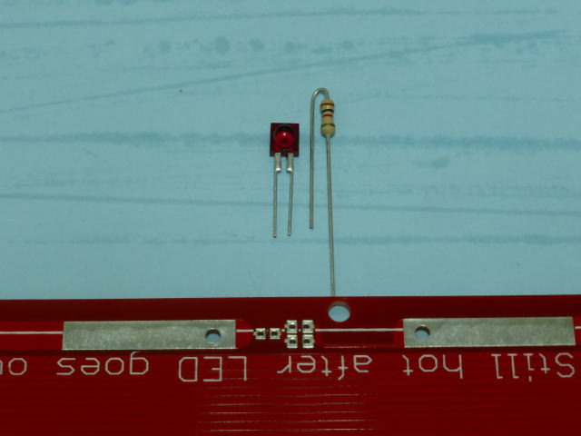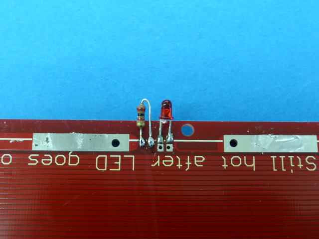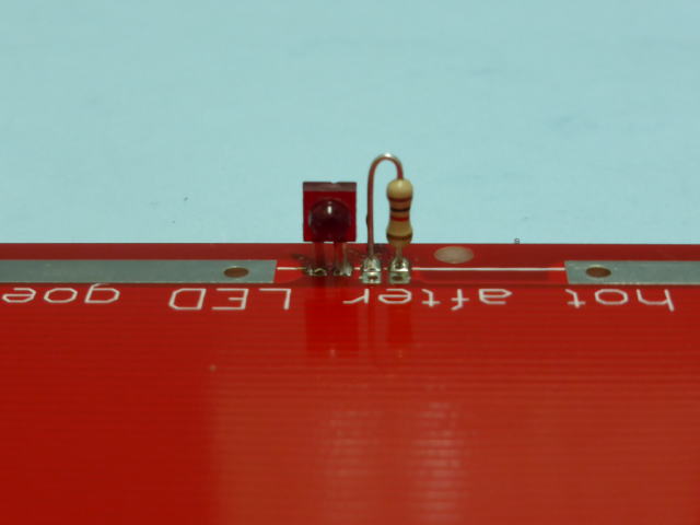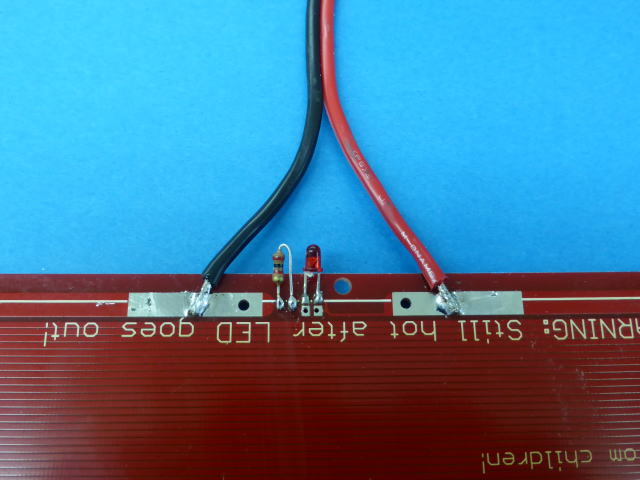 7-3 ヒートベッドの配線(発光ダイオードが角型の場合) ヒートベッドに発光ダイオードと抵抗を取り付けます。 |