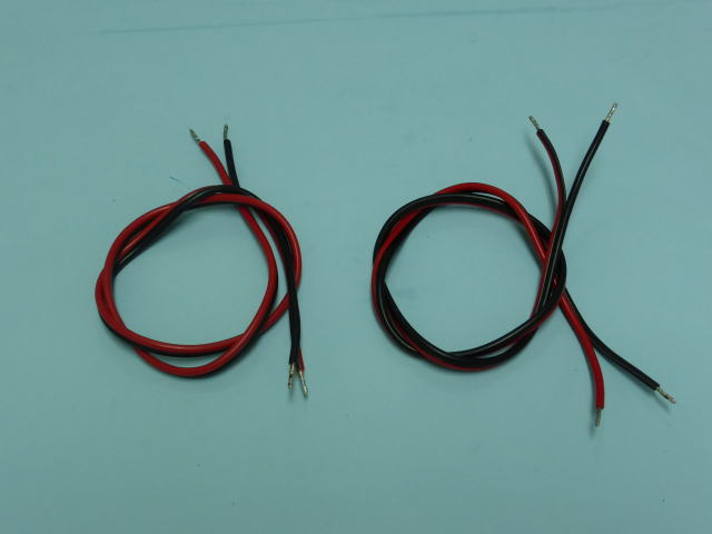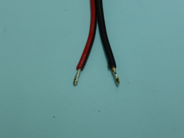 8 電源用配線 電源用電線は赤黒のペア線で長さは600mmです。 末端は両方ともハンダを染み込ませてください。 2本作ってください。 |