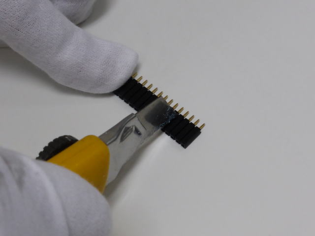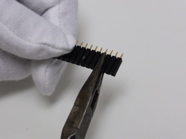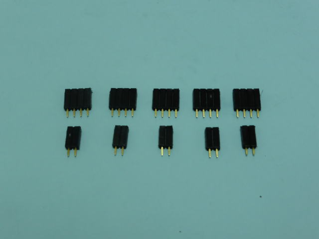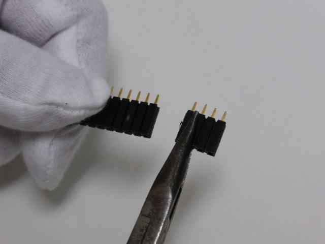 1 分割式ピンソケット分割 分割式のピンソケットを分割して4ピン5個、2ピン5個を作ります。 |
