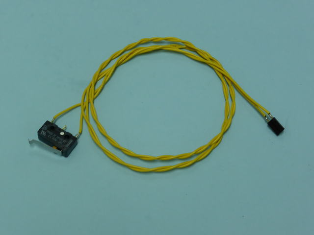 Y軸用マイクロスイッチです。 写真のように黄色長さ600mmの電線を使って2ピンソケットと接続してください。 |