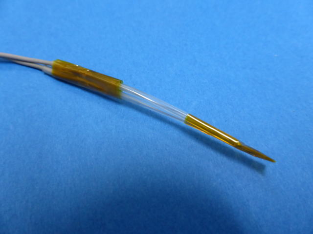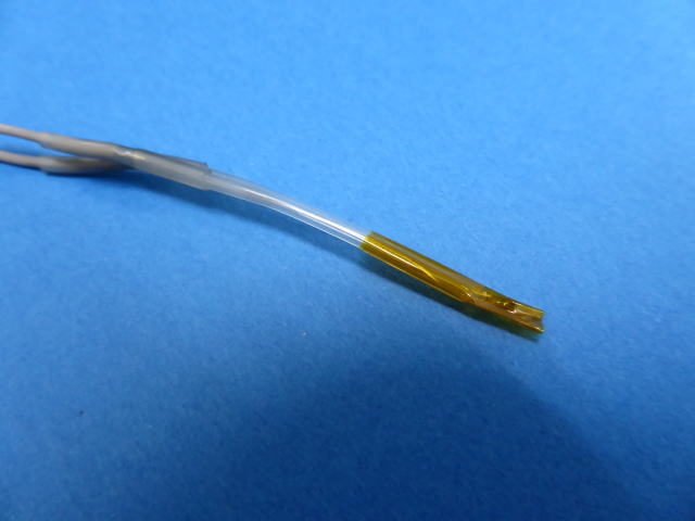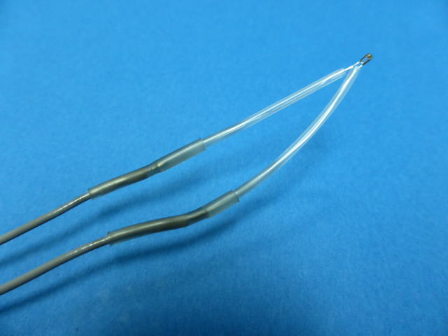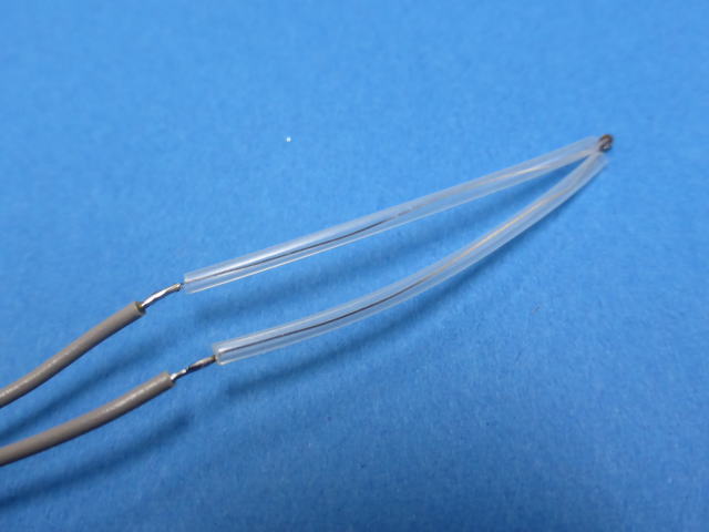10 サーミスター用ケーブルの処理 サーミスターのリード線に絶縁チューブを被せて灰色長さ600mmの電線とハンダ付けしてください。 |