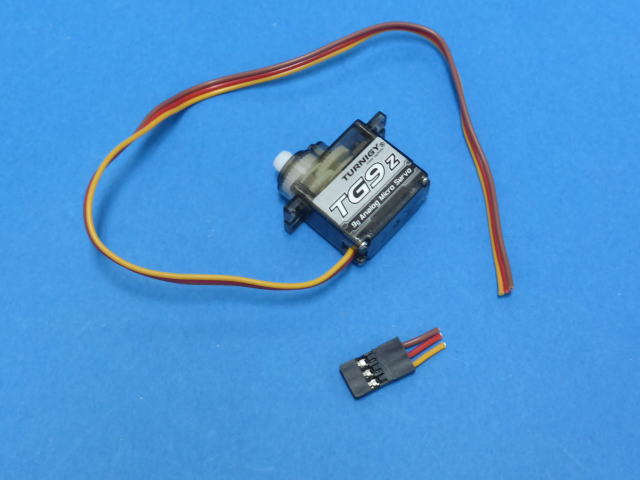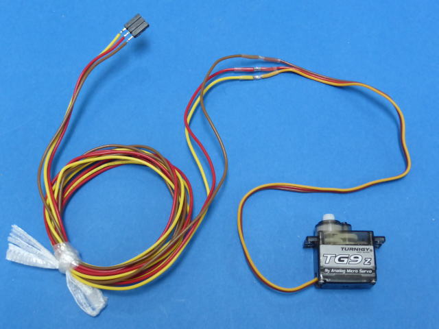 5 サーボモーター用ケーブルハンダ付け サーボモーターに付いているコネクタは使いません。 写真のように切ってください。 |